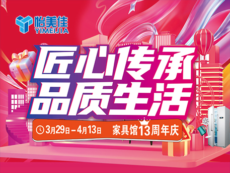 2025/8/5 18:21:002025.3.29--4.13【三重豪禮 店慶鉅惠】時(shí)光鎏金,感恩同行。值此怡美佳家具館13周年店慶之際,誠邀您同享特惠。我們堅(jiān)持“匠心傳承,品質(zhì)生活”,為大家打造健康溫馨之家。在這里,有柔軟舒適的軟體家具,簡約實(shí)用的板式套房,安全童趣的兒童家具,質(zhì)樸自然的實(shí)木家具,典…