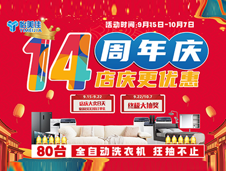 • 怡美佳14周年慶,鉅惠來襲,80臺全自動洗衣機大派送!